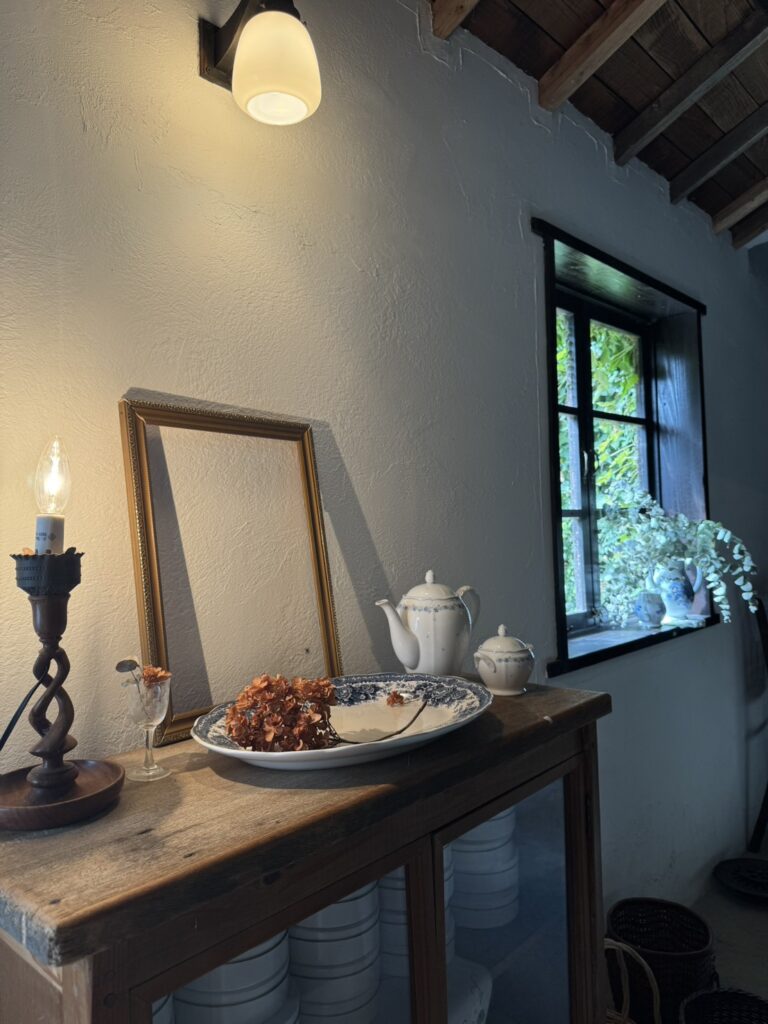 二階はアンティークショップとなっており、ステキなお皿や雑貨が並んでいます🪻