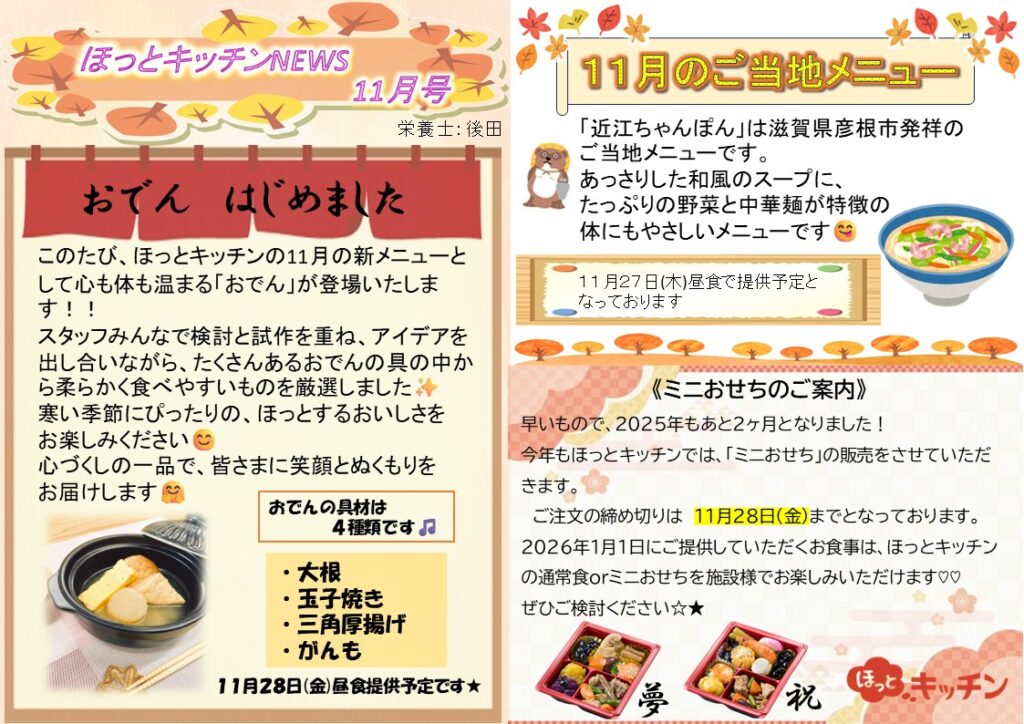 ほっとキッチンnews 11月号のご紹介です✨