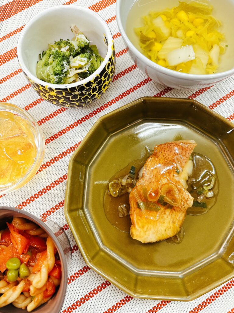 「本日の昼食」 投稿日 2025年12月5日 著者 ほっとキッチン カテゴリー お知らせ・ブログ 2025.12.5(金)〈昼食〉〇コンソメスープ(白菜、コーン、パセリ)〇赤魚のねぎソース〇マカロニのケチャップ炒め〇ブロッコリーと蒸し鶏の和え物〇オレンジゼリー 『赤魚のねぎソース』は、ねぎの風味がよく感じられておいしかったです😊『マカロニのケチャップ炒め』は、ケチャップのうま味がしっかりと出ていました✨