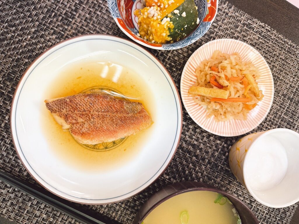 煮つけの魚は『めばる』で、身がふっくら柔らかく食べやすいお魚😊