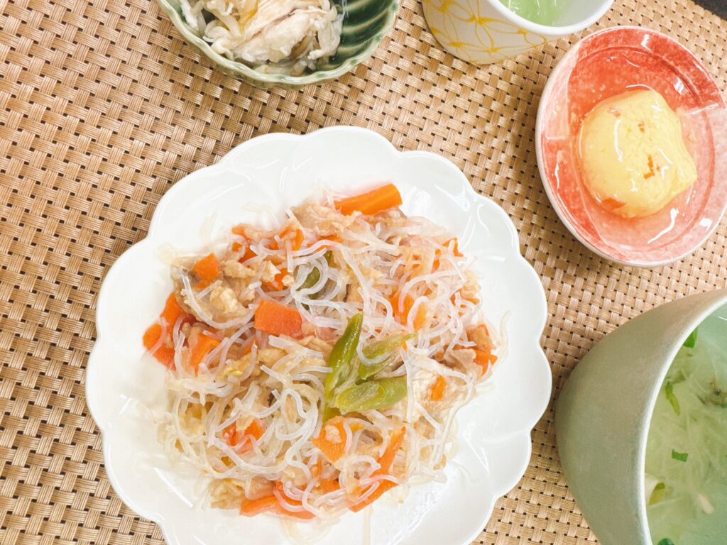 「本日の昼食」 投稿日 2026年2月17日 著者 ほっとキッチン カテゴリー お知らせ・ブログ 2026.2.17(火) 〈昼食〉〇清汁(玉ねぎ、しめじ、こねぎ)〇豚肉と春雨の炒め煮〇玉子しんじょう〇もやしと蒸し鶏の和え物〇青りんごゼリー 本日の昼食★豚肉と春雨の炒め煮は旨みをたっぷり吸った春雨が主役級のおいしさ😋玉子しんじょうはふんわりやさしい口当たりでほっとする味わいです✨もやしと蒸し鶏の和え物はシャキシャキで味もよくついていました(^^♪彩りやそれぞれの食感の違いも楽しんでいただける献立です😌🤗