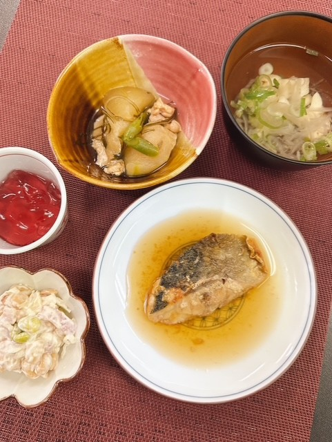「本日の昼食」 投稿日 2026年3月28日 著者 ほっとキッチン カテゴリー お知らせ・ブログ 2026.3.28(土) 〈昼食〉〇清汁(玉ねぎ、竹輪、こねぎ)〇あじの煮つけ〇冬瓜と鶏肉の昆布煮〇大豆とベーコンのサラダ〇ぶどうゼリー 『あじの煮つけ』は生姜香る甘辛ダレでご飯が進みました😊 『冬瓜と鶏肉の昆布煮』は鶏肉と昆布の旨みが冬瓜によく染みていました✨