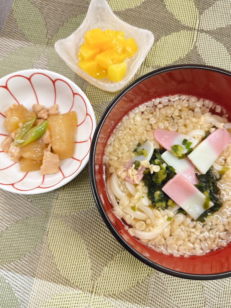 「本日の昼食」 投稿日 2026年4月8日 著者 ほっとキッチン カテゴリー お知らせ・ブログ 2026.4.8(水) 〈昼食〉〇たぬきうどん(わかめ、蒲鉾、こねぎ) (別袋)天かす〇冬瓜と鶏肉の炒め煮〇冷)黄桃 「たぬきうどん」は、出汁のうまみがしっかり感じ、天かすがアクセントになっておいしかったです✨ 「冬瓜と鶏肉の炒め煮」は、冬瓜がとろっと柔く、味も染みていてほっとする味でした🌝