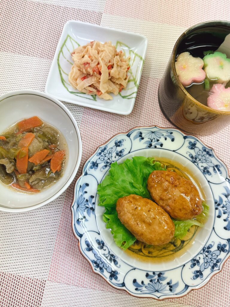 れんこんが程よい食感のつくねは生姜あんでさらにご飯がすすむメニューです😋