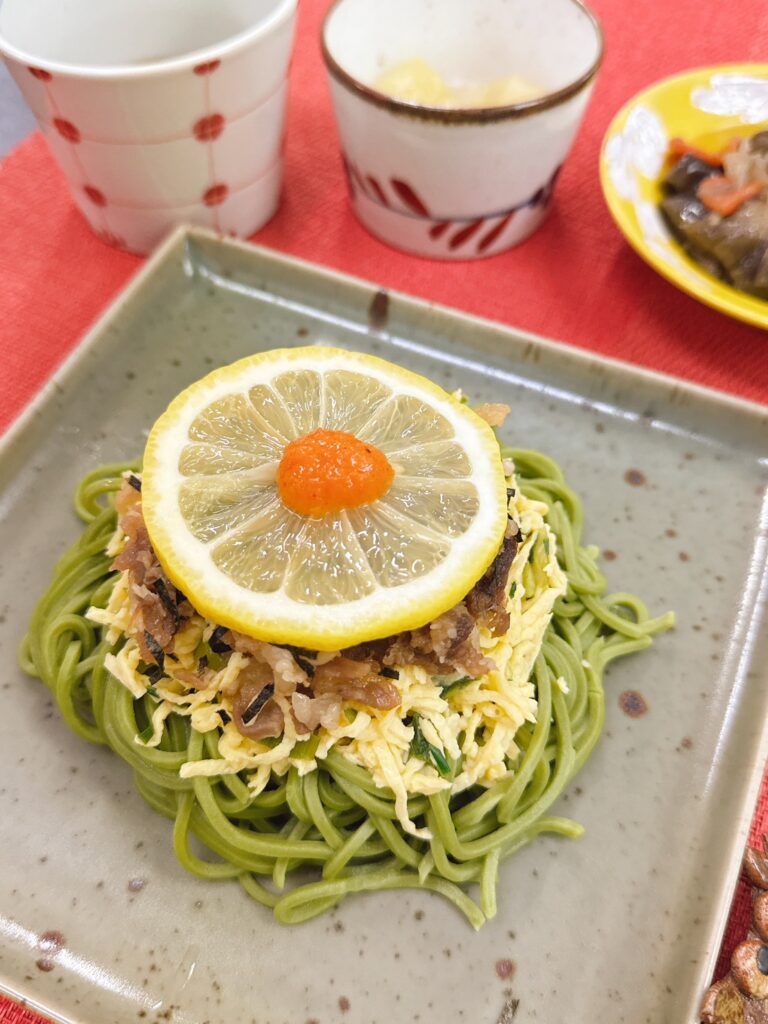 「本日の昼食」 投稿日 2026年4月24日 著者 ほっとキッチン カテゴリー お知らせ・ブログ 2026.4.24(金)〈昼食〉〇瓦そば風(山口県ご当地メニュー)〇茄子のピリ辛炒め煮〇白桃 本日の昼食は大人気のご当地メニュー・山口県の『瓦そば』です🥰甘辛い牛肉とふんわり錦糸卵の組み合わせが食欲をそそる瓦そば✨レモンやもみじおろしを添えることでさっぱりとした後味になり最後まで楽しめるメニューです🤗🌟